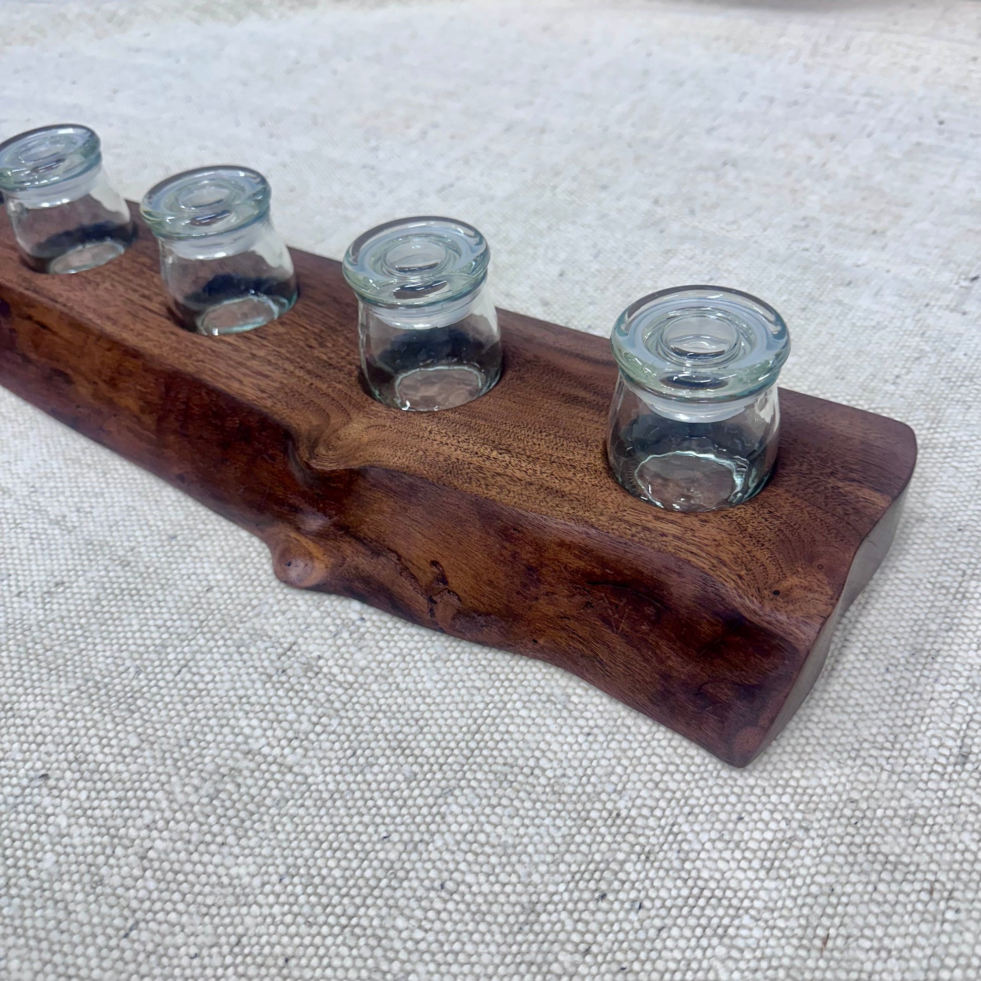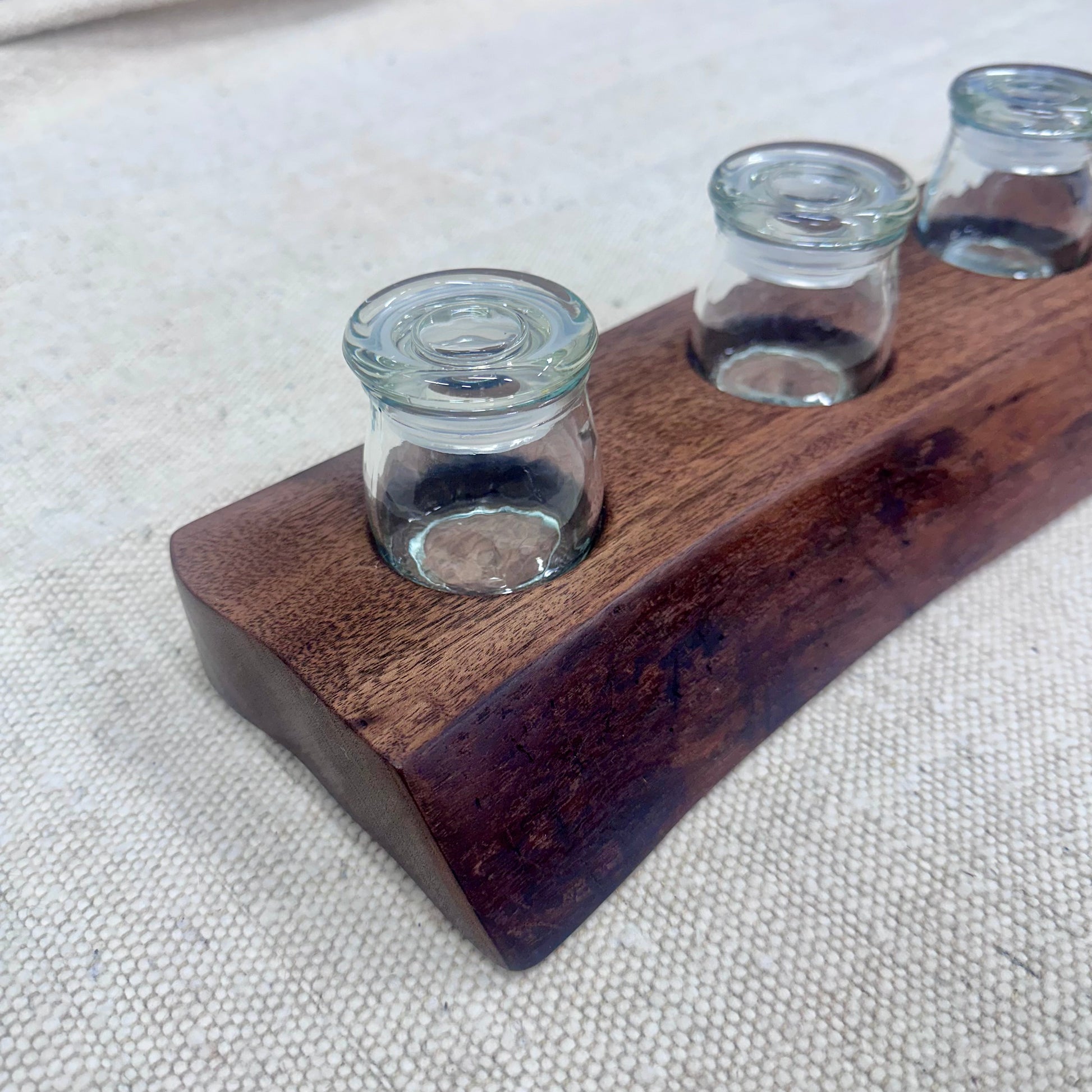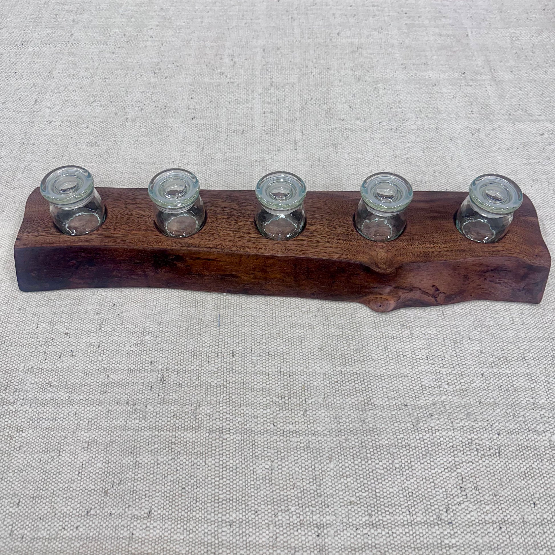 Dimensions: 22.5" wide x 5.5" deep x 3.5" tall with glass bottles